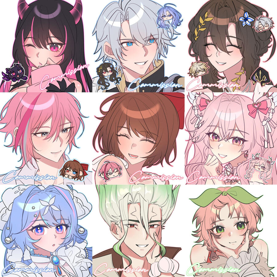 Price included for couple (2 knee up, 2 bust/waist up, 2 chibis)